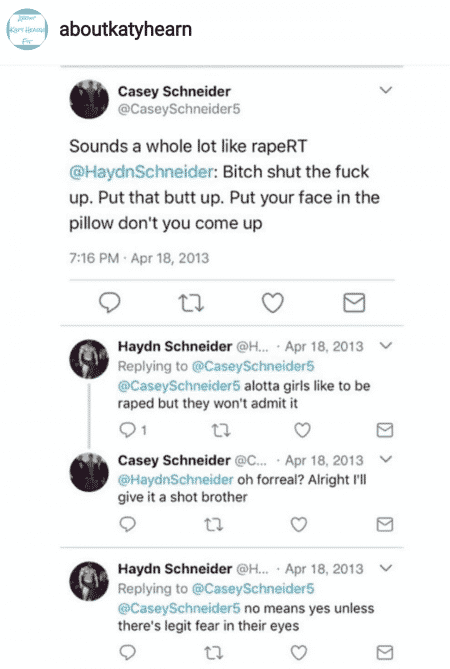 L’homme en question est notamment connu pour être très (trop) actif sur les réseaux sociaux. Si quiconque a le malheur de lui faire la moindre remarque, il rapplique illico. Qu’il s’agisse de lui-même, de sa femme ou encore de son éthique de travail, il n’a aucune pitié et poursuit ses détracteurs sans relâche. Dernièrement, certaines « victimes » de son compte Twitter et de ses tirades à rallonge ont néanmoins découverts des Twitts plus que limite. À savoir des messages particulièrement troublants sur le viol. Ainsi, il expliquait à son frère que « non veut dire oui jusqu’à ce que vous puissiez voir une réelle frayeur dans ses yeux« . Ou encore que beaucoup de femmes aimeraient être violées, mais qu’elles ne l’admettent pas.