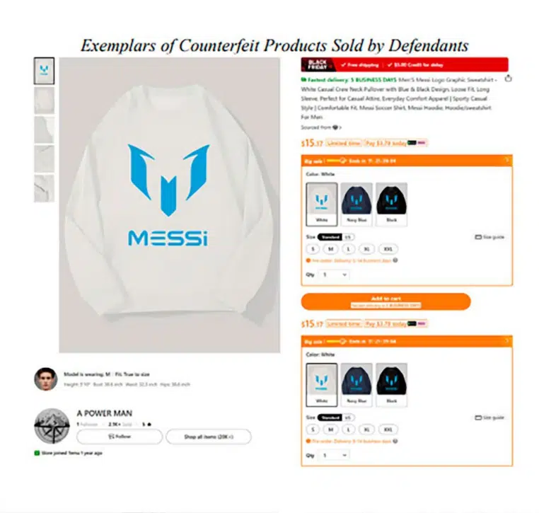 Selon les documents judiciaires relayés par la presse argentine, les défendeurs opèrent des boutiques en ligne sur les marketplaces Temu et Walmart. Aucun d’entre eux ne dispose de licence ni d’autorisation pour utiliser la marque MESSI.