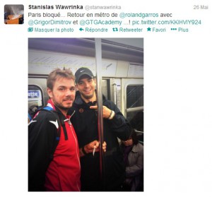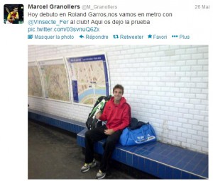 Mais les trois ne sont pas les seuls joueurs à s’être retrouvé en galère… Le tennisman Espagnol, Marcel Granollers, a également visité les souterrains Parisiens en compagnie de son entraîneur, Fernando Vicente Fibla, pour rentrer à son hôtel. Et comme Stanislas Wawrinka, l’Espagnol n’a pas hésité à tweeter son aventure dans le métro Parisien : « aujourd’hui commence Roland Garros, nous allons au club en métro avec Fernando Vicente Fibla. Voici la preuve. »