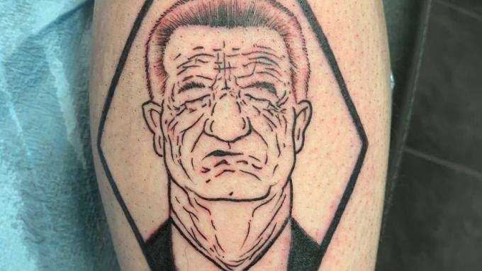 Le portrait que s’est fait tatouer l’homme ne vient pas d’une photo. Mais d’une caricature réalisée par Marsault.
