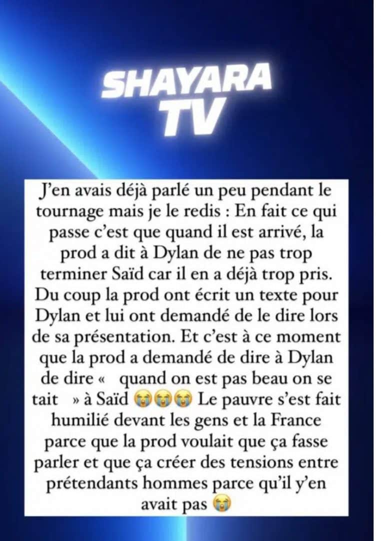 Dans Les Princes et Princesses de l’Amour, l’arrivée des prétendants serait notamment scénarisée. En effet, la production donnerait des textes aux nouveaux arrivants pour leur présentation. Cette année, l’arrivée de Dylan, un prétendant d’Haneia a surpris. Le jeune homme n’aurait en fait pas utilisé ses propres mots selon ShayaraTV.