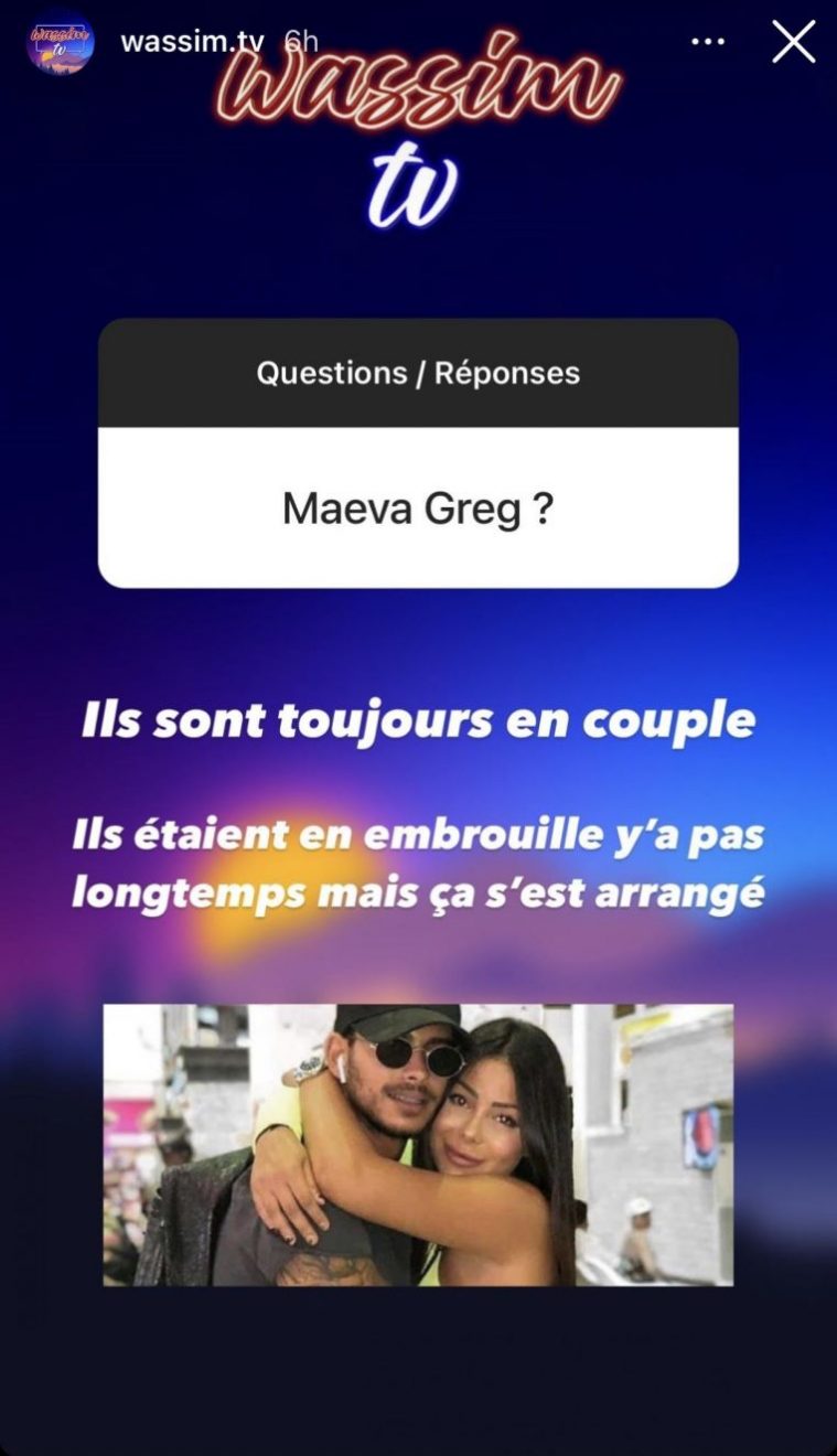 Curieux de savoir si Maeva et Greg ont résisté à cette embrouille, un internaute a demandé des nouvelles des tourtereaux sur le compte Instagram du blogueur Wassim TV. D’après les dires de ce dernier, il n’y a eu plus de peur que de mal. « Ils sont toujours en couple » , a-t-il dévoilé, avant d’ajouter. « Ils étaient en embrouille il n’y a pas longtemps, mais ça s’est arrangé » .