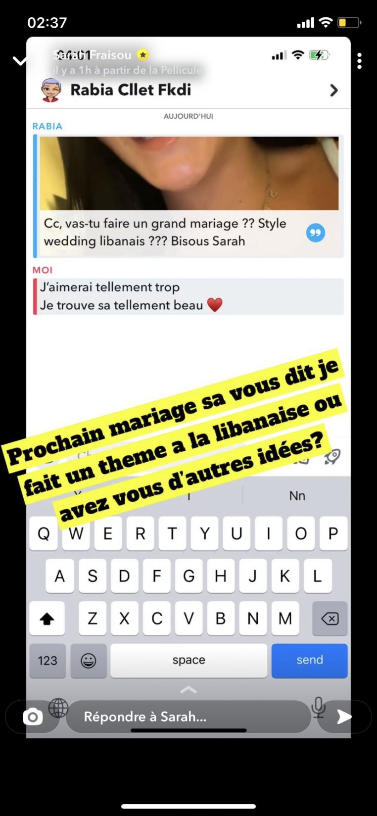 Sur son compte Snapchat, la jeune femme a partagé une capture d’écran d’une conversation avec une abonnée. Ses déclarations sèment le doute sur le futur de sa relation avec Mehdi.