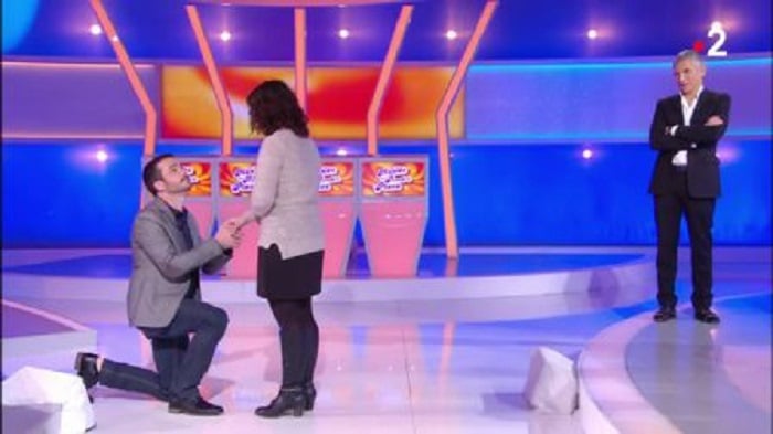 Sur le plateau de Tout le monde veut prendre sa place, Nagui pensait avoir tout vu. Mais c’était sans compter sur Vincent qui entraîne sa compagne en plein milieu du plateau et lui fait sa demande en mariage.