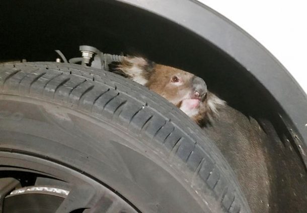 L’histoire se passe bien évidemment en Australie, à Adelaïde. Un koala terrifié avait trouvé refuge sur l’axe métallique de soutien de la roue d’une voiture. On ne sait pas pour quelle raison, soit parce que l’animal trouvait cette cachette agréable et ombragée, soit parce qu’il fuyait un prédateur, mais le koala était logé au-dessus de la roue. C’est donc, sans le savoir, que le propriétaire du véhicule l’a mis en marche et est parti, sans imaginer la terrible aventure que vivait le koala sous la voiture.