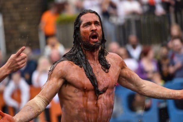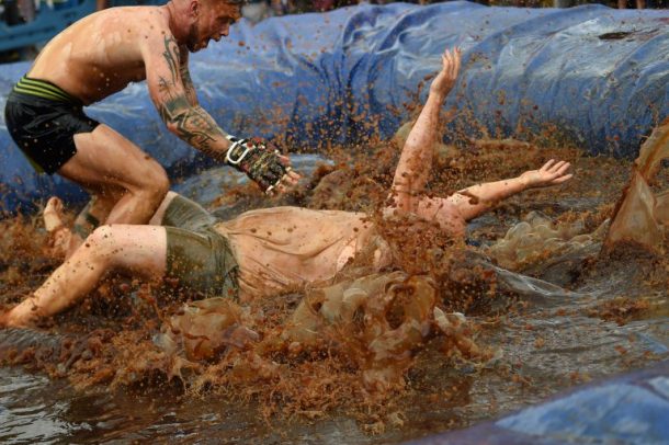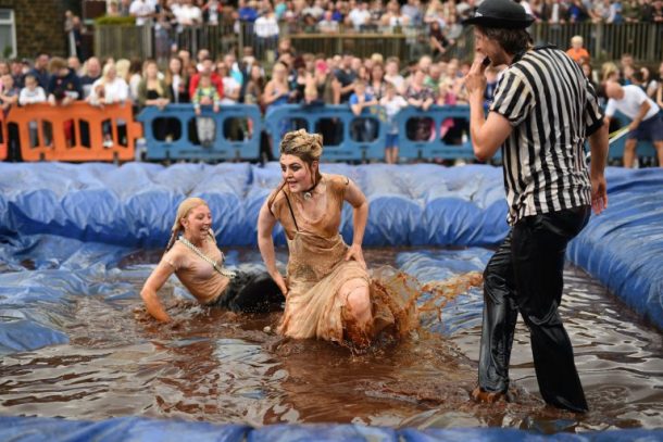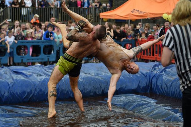 Sur les photos qui nous sont parvenues, nous n’avons malheureusement pas l’odeur. Mais imaginez ces hommes musclés et transpirants se taper dessus dans du jus de viande…. Si ça ce n’est pas appétissant ? Et ceux qui crient à l’équité des sexes ne vont pas être déçus, car le tournoi a également prévu des combats féminins. Depuis 10 ans, ce tournoi est un peu l’attraction locale. Des centaines de litres de sauce Lancashire sont déversées dans une piscine.