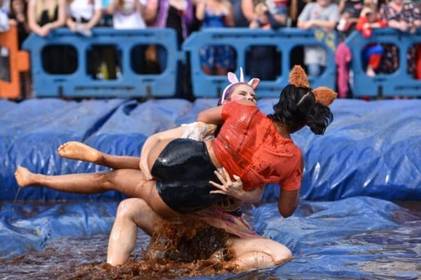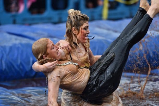 Les combats durent deux minutes et le vainqueur est choisi grâce à un système de points attribués par un jury. Les arbitres prennent en compte le style de lutte, la force, les coups, mais aussi le caractère du lutteur et son éventuel déguisement. Car il faut bien le dire, ici on vient surtout pour s’amuser et se salir. Cette année, on a pu apercevoir un costume de boucher, de princesse, de mariée ou de policière. Il y a aussi le personnage de Game of Thrones, Khal Drogo qui s’est invité à la fête. La participation est payante et l’argent récolté, également avec les tickets des spectateurs, ira à une bonne cause. Cette année, c’est l’hôpital de la région qui recevra l’enveloppe.