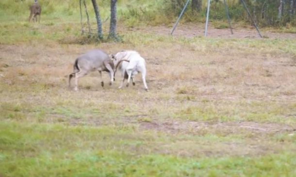 J’aime penser que le karma est toujours là pour vous foutre un bon coup de pied dans le cul dès que vous faites quelque chose de mal. C’est comme ça, il faut rétablir l’équilibre des forces. Et quand un bélier charge un cerf qui n’a rien demandé à personne, il se prend le karma en pleine face. Car le cerf n’a manifestement pas dit son dernier mot. Et n’a aucune intention de se laisser faire. Cette scène s’est déroulée dans le ranch de Tierra de Dios, au Texas. Le cervidé a immédiatement fait usage de ses grands bois contre son agresseur afin de le repousser.