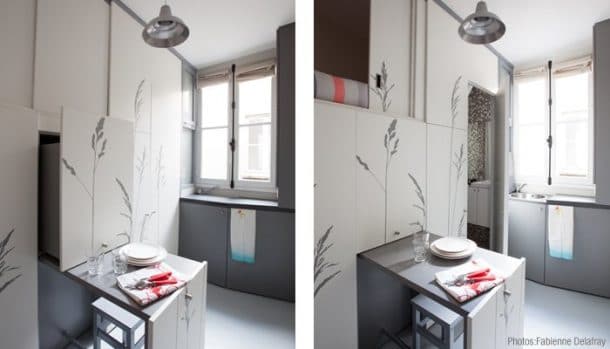 Vous vous souvenez cette époque ou vous faisiez vos études à Paris, ou je ne sais quelle autre grande ville, et où vous habitiez dans l’équivalent d’une cage à hamster ? Et c’était probablement vos meilleures années ! Quoi qu’il en soit, petit espace ne signifie pas forcément qu’on ne peut pas s’y sentir bien. À moins d’être du genre à accumuler masse de choses et ne pas pouvoir s’en débarrasser… Mais quand on a pas le choix, on fait avec. Un peu comme cette chambre de bonne de 8m2 située à Paris. Vous imaginez vivre dans un si petit appartement ? Eh bien croyez-le ou non, mais certains y arrivent, et on peut tout faire rentrer. Du moins l’essentiel.
