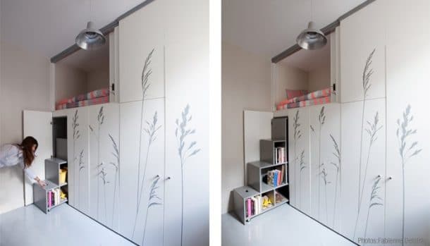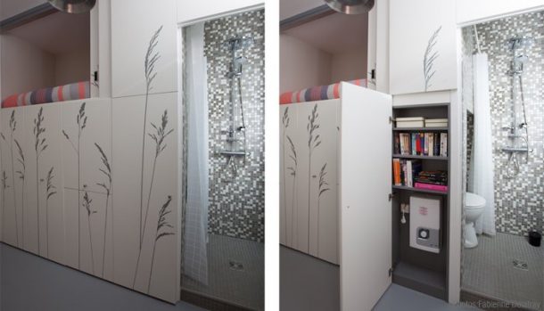 Un lit, un coin détente avec table et chaises, des rangements, une kitchenette, une salle d’eau… Bref, tout a été pensé pour que vous vous y sentiez comme chez vous. Concrètement, chaque recoin de cet appartement a été optimisé de sorte à ne pas perdre 1 seul millimètre. Vous serez surpris de voir à quel point on peut bien aménager un espace. Si l’on réfléchit à son agencement intelligemment. Et c’est le studio d’architectes Kitoko qui a totalement re-pensé cette chambre de bonne. On vous laisse découvrir le résultat, c’est impressionnant ! On note évidemment qu’un espace de 8m2 ne peut être loué, le minimum étant de 9m2. D’après le site Kitoko, la pièce aurait été rénovée pour une fille au pair dont les propriétaires ne disposaient pas d’assez de place pour son espace personnel.