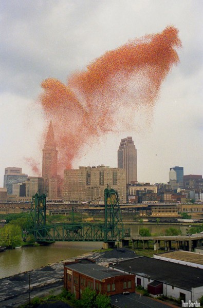 Le principe de cet événement était simple: lâcher 1,5 million de ballons dans la ville américaine. Les ballons gonflés à l’hélium ont créé un véritable nuage géant sur la ville…et les organisateurs ont frôlé la catastrophe ! Les ballons se sont répartis un peu partout dans la ville à tel point que les autorités ont dû notamment fermer un aéroport local et interrompre une tentative de sauvetage de pêcheurs par les gardes-côtes!