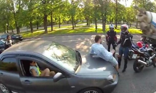 Alors que le jeune homme sort du véhicule pour s’expliquer, l’un des motards le pousse violemment contre le capot. C’est à ce moment-là que la jeune femme sort de la voiture. Choquée et énervée par le geste du motard, elle souhaite s’expliquer aussi arguant que son petit-ami n’a pas agit volontairement. La pauvre semble ne pas comprendre ce qui se passe. La suite de la vidéo est plutôt inattendue, on vous laisse d’ailleurs découvrir les images.