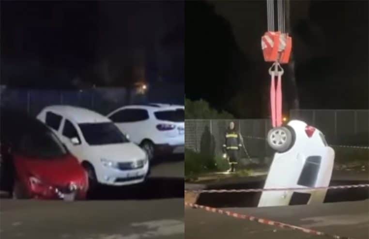 Deux véhicules engloutis par un gouffre de 13 mètres de profondeur (vidéo)