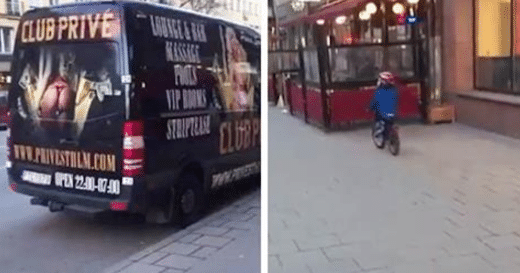 Distrait par une publicité un peu coquine, ce petit garçon va faire un tout droit en vélo ! (vidéo)