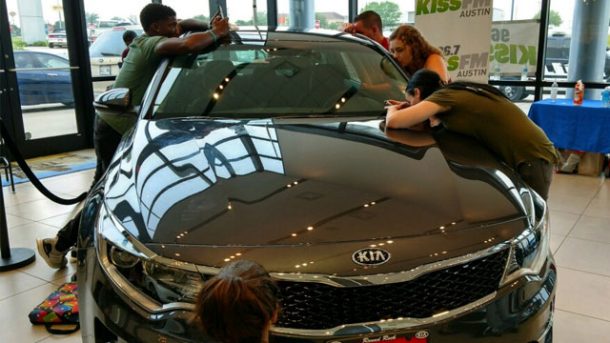 Certaines personnes sont prêtes à tout pour gagner une voiture. La station de radio texane Kiss FM a lancé un concours original et humiliant pour ses auditeurs. Quoi de plus normal pour une station de radio qui s’appelle Kiss que d’organiser un concours de bisous ? La station et son partenaire Kia ont décidé d’offrir une voiture à l’auditeur qui fera le plus long bisou à la Kia exposée.