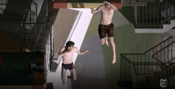 Le but du mini-documentaire réalisé par Maxmilien Van Aertryck et Axel Danielson est d’analyser le comportement réel de personnes mises en situation de stress. On connait tous les mimiques d’anxiété qu’adoptent les comédiens quand ils doivent jouer la peur, mais à quoi ressemble ce comportement dans la réalité ? Les 67 participants ont répondu à une annonce qui précisait rechercher des volontaires qui n’avaient jamais plongé de leur vie. Une fois arrivés à la piscine, les participants ont été payés 30$ pour monter sur le plongeoir et aller jusqu’au bord. Certains ont décidé de plonger, d’autres ont fait demi-tour. Cela fait partie des réactions analysées.