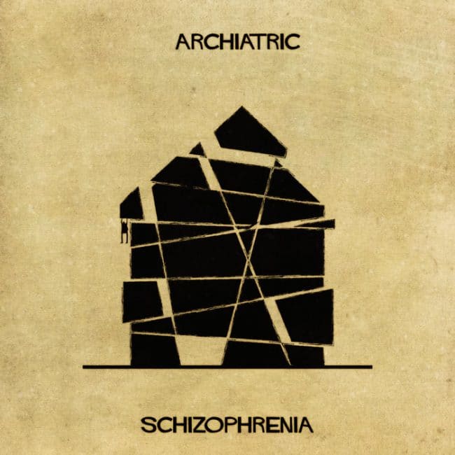 Basé à Barcelone, l’artiste Federico Babina vient de se lancer dans un tout nouveau projet. Il a été baptisé Archiatric et dépeint 15 maladies et troubles mentaux. mais ce qui est intéressant ici, c’est surtout la façon dont Federico a choisit d’illustrer ces troubles. En effet, chacun d’entre eux est représenté par une maison. Et l’aspect de chacune des maisons est supposé pouvoir expliquer une maladie mentale ou un trouble mental en fonction de son aspect. Parmi les divers troubles illustrés, on retrouve notamment la dépression, la bipolarité, ou encore l’autisme.