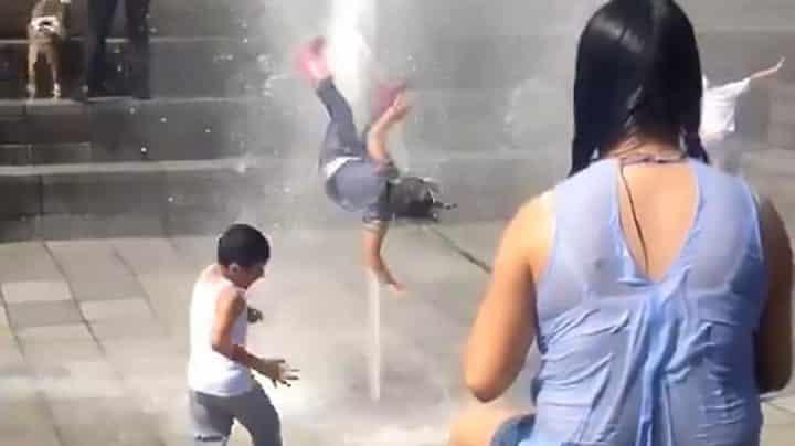 On ne peut décidément pas laisser les enfants sans surveillance. Même lorsqu’ils s’approchent d’une fontaine, ils risquent un accident. Regardez dans la vidéo comment cette petite fille s’est faite projeter dans les airs, au moment où elle a voulu passer au-dessus du jet de cette fontaine publique, au Mexique.