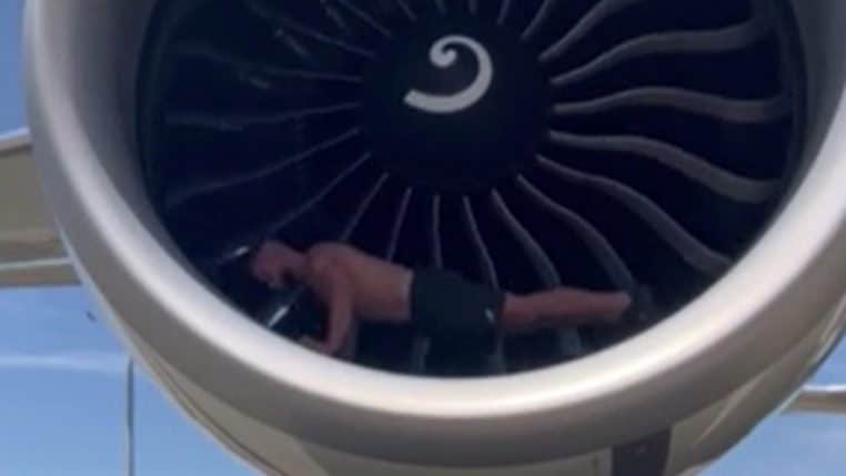 Il monte dans le moteur d’un avion en marche pour faire des pompes (vidéo)