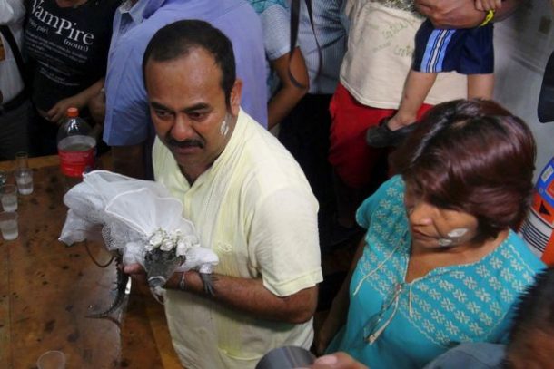 Le maire d’une ville mexicaine se marie à un crocodile pour protéger les pêcheurs locaux
