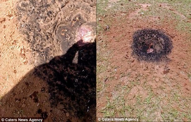 Jay Sullivent a entendu un bruit assourdissant provenant de son jardin. Il s’empare de son téléphone pour filmer ce sur quoi il pourrait tomber. À première vue, rien de grave n’est arrivé. Puis, il voit de la fumer s’échapper de sa pelouse. Un trou brûlant est apparu en plein milieu de son jardon, brûlant le gazon. Une braise continue à bruler au centre du trou… Il s’agit d’un petit bout de météorite, de quelques centimètres seulement, qui s’est écrasé dans son gazon.