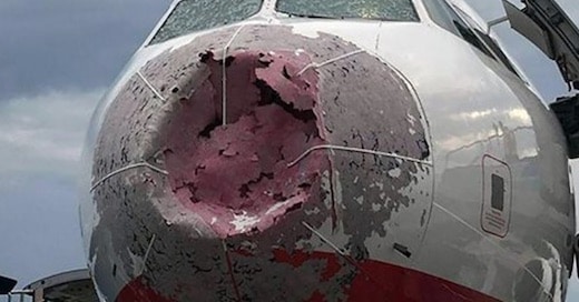 Alors qu’il venait de décoller de l’aéroport Ataturk d’Istanbul avec pas moins de 127 passagers, le Capitaine Oleksandr Akopov, pilote de ligne, a du faire face à une tempête de grêle sans précédent. En quelques minutes, des grêlons aussi gros que des oeufs de poule ont ravagé le pare-brise de l’avion ainsi que son nez qu’ils ont complètement enfoncé. Le système de pilotage automatique ayant été touché également, il a du prendre sur ses épaules tout le poids du sauvetage de ses passagers et de son équipage de bord.