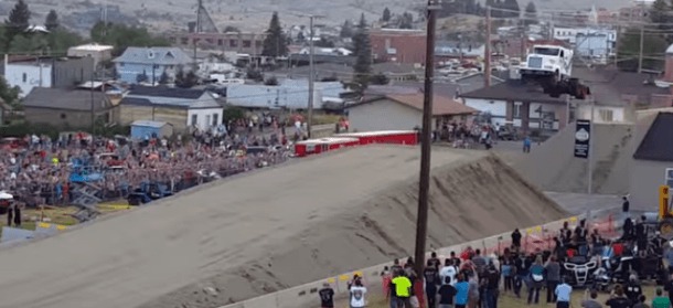 Le saut en longueur ne semble pas réservé aux poids plumes bien au contraire…Samedi 25 Juillet dans le Montana aux USA, ce semi-remorque a battu le record du monde de saut en longueur qui était précédemment de 26 mètres… Un record largement battu donc par le pilote Gregg Godfrey puisqu’il est resté 50 mètres dans les airs à bord de son camion…