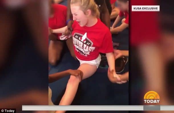 Elles sont belles, elles sont populaires, elles sont les reines du lycée. Aux États-Unis, les pom-pom-girls sont là pour faire rêver les spectateurs pendant les pauses des rencontres sportives très appréciées dans le pays. Mais ce qui se cache derrière leur grand sourire et leur souplesse innée est incroyable. C’est en tout cas ce qui arrive dans ce lycée du Colorado. Une vidéo amateur montre comment les jeunes filles sont torturées, afin de forcer leur souplesse. Sur cette vidéo, une pom-pom-girl est au sol, alors que son chef et des camarades lui écartent les jambes pour lui faire faire le grand écart.