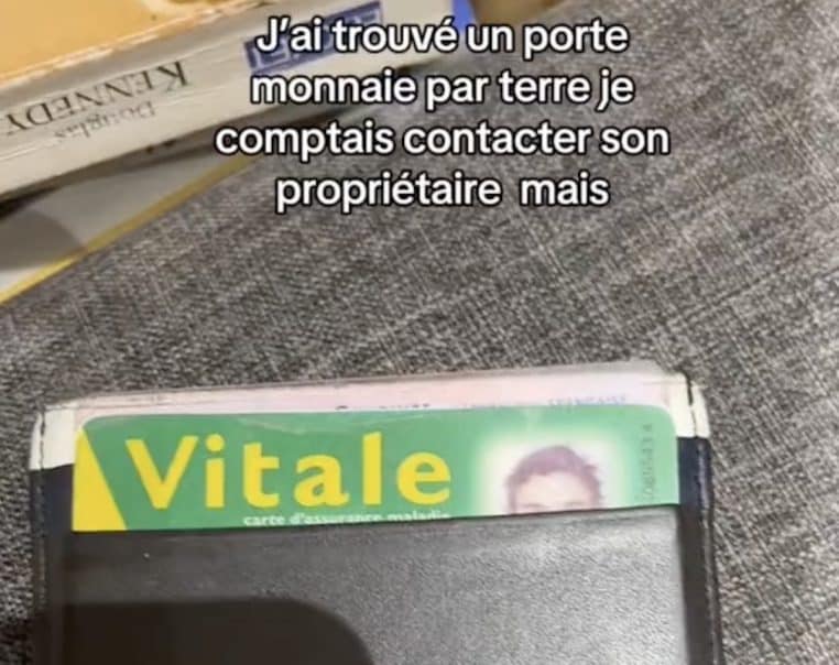 Elle écrit sur sa vidéo « J’ai trouvé un porte-monnaie par terre, je comptais contacter son propriétaire mais ». La vidéo qui défile montre la jeune femme découvrant que le porte-carte contient une carte d’adhésion au parti Reconquête d’Eric Zemmour.