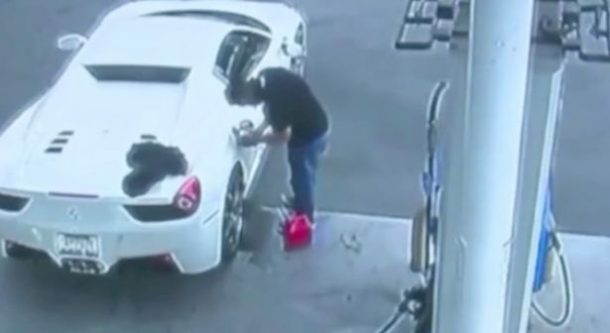 Après avoir volé une Ferrari, il se fait prendre car il n’avait pas l’argent pour payer l’essence et ne savait pas comment faire le plein