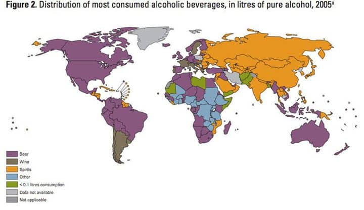 La carte du monde des boissons alcoolisées les plus populaires par pays