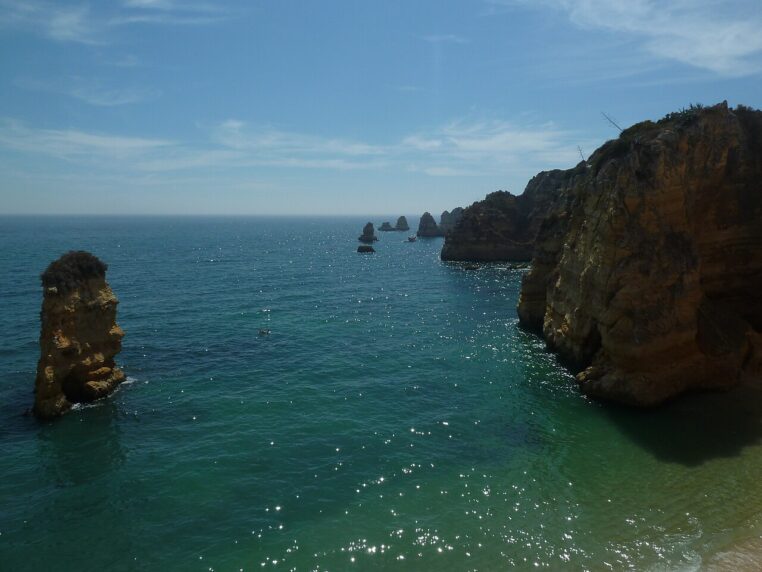 Praia da Marinha reste l’un des symboles les plus forts de cette beauté minérale. Le paysage semble presque composé pour la photo, avec ses rochers découpés, sa lumière franche et sa mer claire. Plus loin, vers Lagos, les formations érodées et les plages bordées de falaises offrent un autre visage du même spectacle, plus dramatique encore, surtout quand le soleil descend. On comprend vite pourquoi cette côte revient si souvent dans les classements de destinations balnéaires.